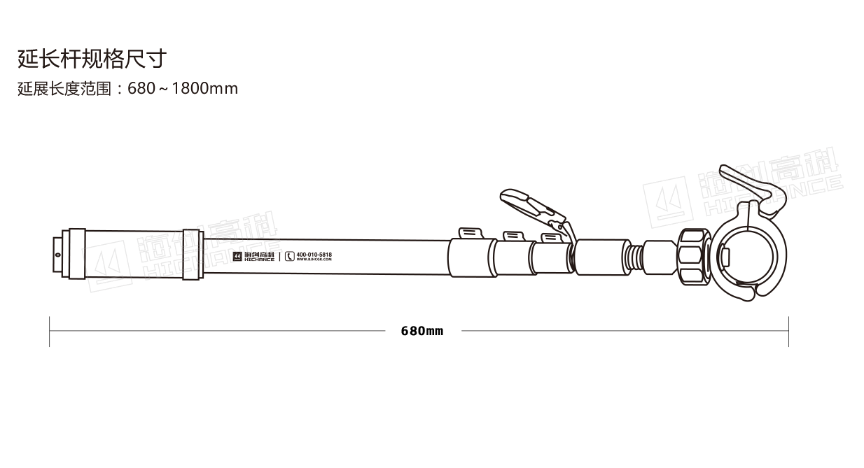 延展長(zhǎng)度范圍:680 ~ 1800mm